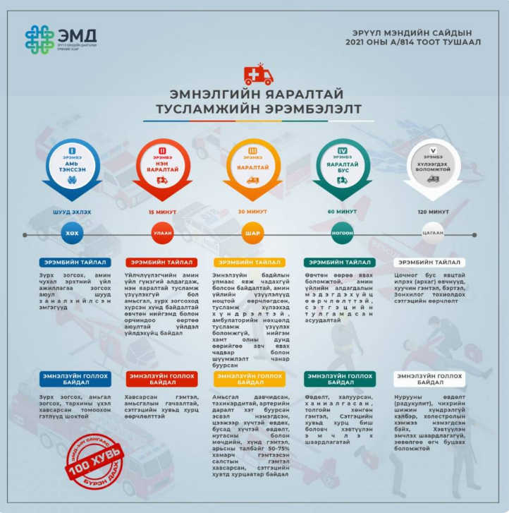 Эмнэлгийн яаралтай тусламж, үйлчилгээнд амь насанд нь учирч буй эрсдэл өндөртэй үйлчлүүлэгчээс эхэлж үзүүлэх эрэмбэлэлтийн зарчим баримтална.