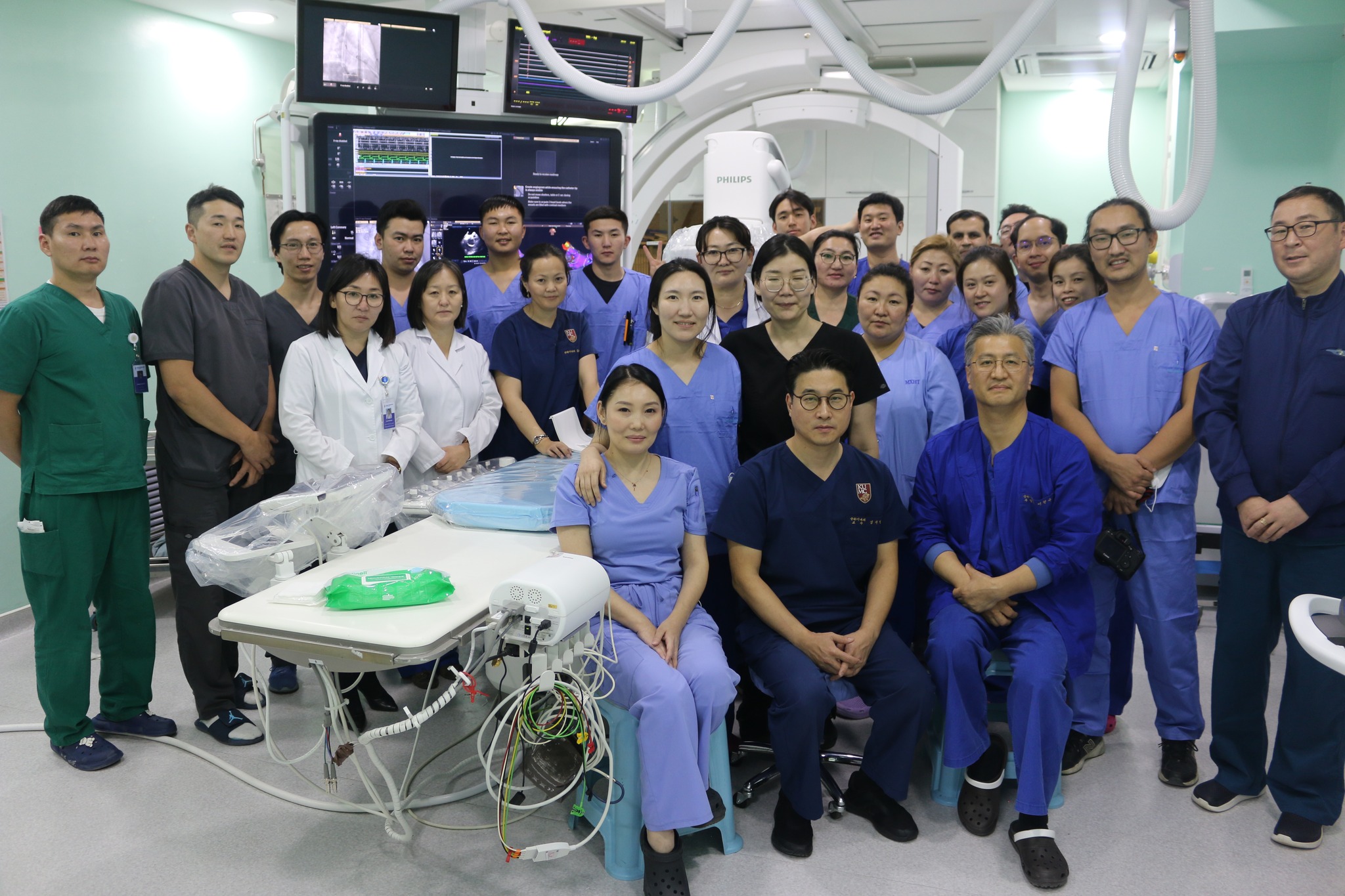 Тэгвэл БНСУ-ын Корeа Их Сургуулийн "АНАМ ЭМНЭЛЭГ-ийн Хэм Алдагдлын Шим Жэ Мин профeccороор ахлуулсан 10 хүний бүрэлдэхүүнтэй баг, УНТЭ-ийн Зүрхний Төвийн "Зүрхний Хэм Алдагдал"-ын багтай хамтран " Тосгуурын хэм алдалт, Ховдлын хэм алдалт, Ховдлын дээрх хэм алдалт" оноштой таван тохиолдолд Зүрхний аблаци /түлэх/ эмчилгээг энэ сарын 27-28 ны өдрүүдэд амжилттай хийж гүйцэтгэлээ.