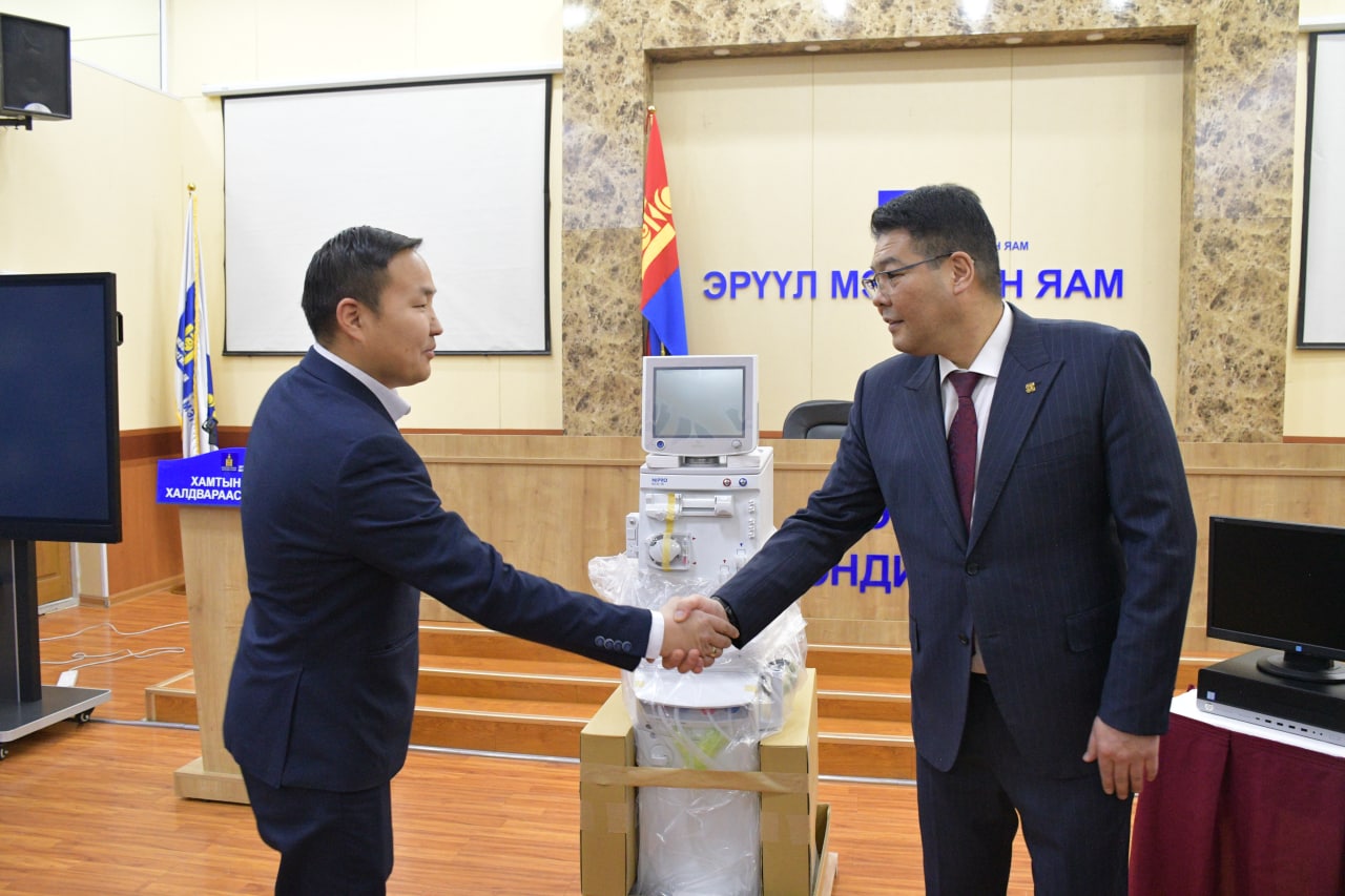 Иргэдэд үзүүлэх эрүүл мэндийн үйлчилгээний төвлөрлийг сааруулах, орон нутгаас нийслэлрүү зорчих иргэдийн тоог багасгах, чанартай тусламж, үйлчилгээг цаг алдалгүй хүргэх зорилгоор Улсын төсвийн нэг тэрбум 260 орчим сая төгрөгийн хөрөнгө оруулалтаар ХСҮТ, ЭХЭМҮТ, 19 аймгийн нэгдсэн эмнэлэг болон Хан-Уул дүүрэг, Багануур дүүргийн Эрүүл мэндийн төвүүдэд хамгийн сүүлийн үеийн Nipro NCU-18 загварын 28 ширхэг гемодиализийн аппаратыг хүлээлгэн өглөө.