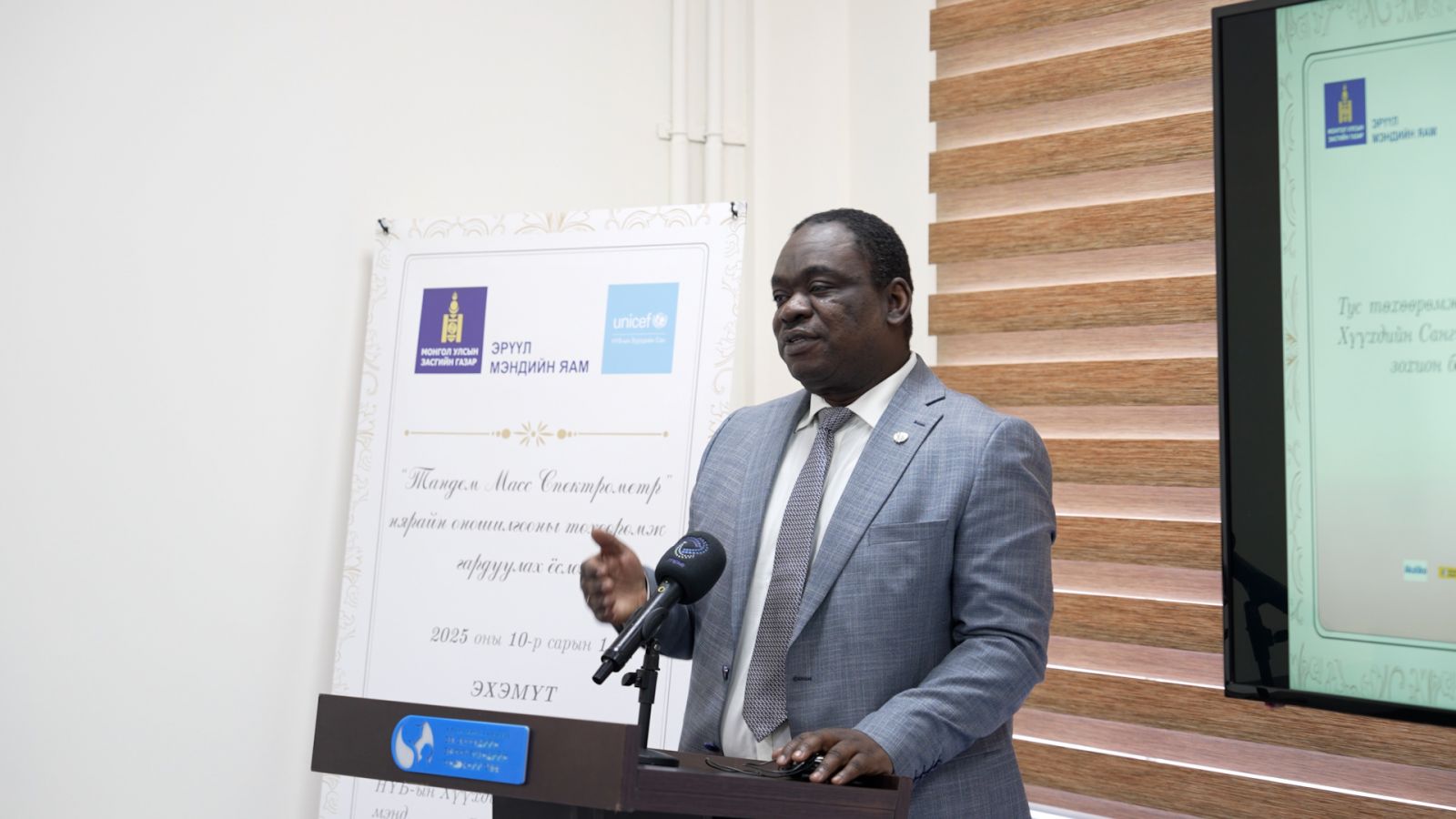 “Монгол Улсад эх, нярай, хүүхдийн эрүүл мэндийн эмчилгээ үйлчилгээг сайжруулах чиглэлд НҮБ-ын Хүүхдийн Сангаас тасралтгүй хэрэгжүүлж буй олон ажлуудын нэг хэсэг нь энэ оношилгооны төхөөрөмж юм.