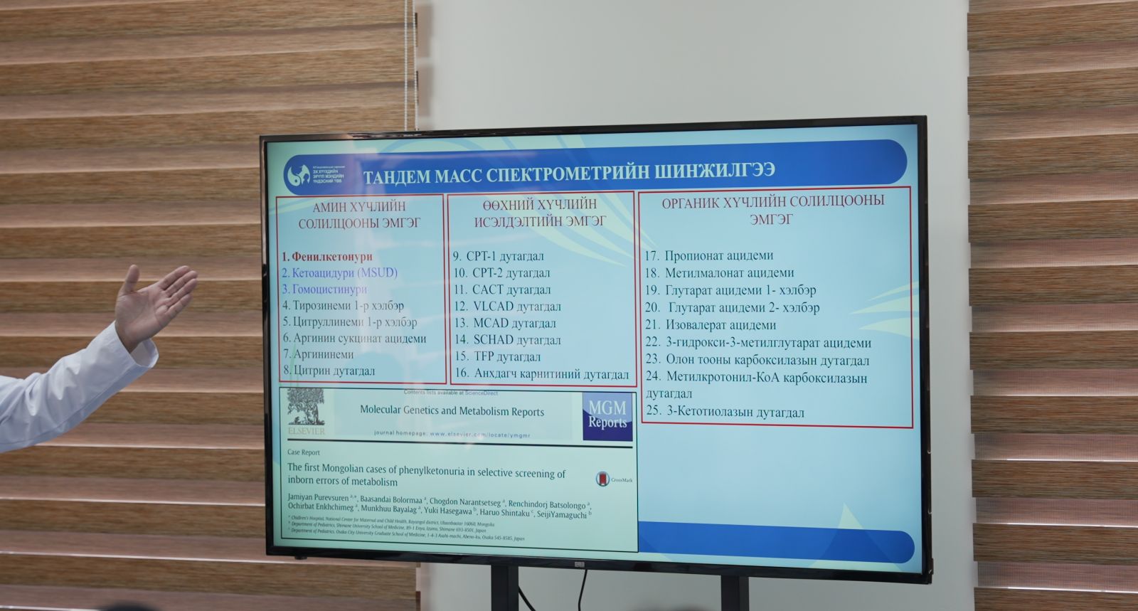 “Тандем масс спектрометри” хэмээх энэ технологи нь дөнгөж төрсөн хүүхдээс нэг дусал цус авч, 25–30 төрлийн бодисын солилцооны эмгэгийг илрүүлэх өндөр нарийвчлалтай юм. Эдгээр эмгэгүүдийг эрт илрүүлэн оношилсноор эмчилгээг бүрэн хийж , хүүхдийг ирээдүйд хөгжлийн бэрхшээлтэй болох, цаашлаад амь насаа алдахаас сэргийлэх боломжтой юм.