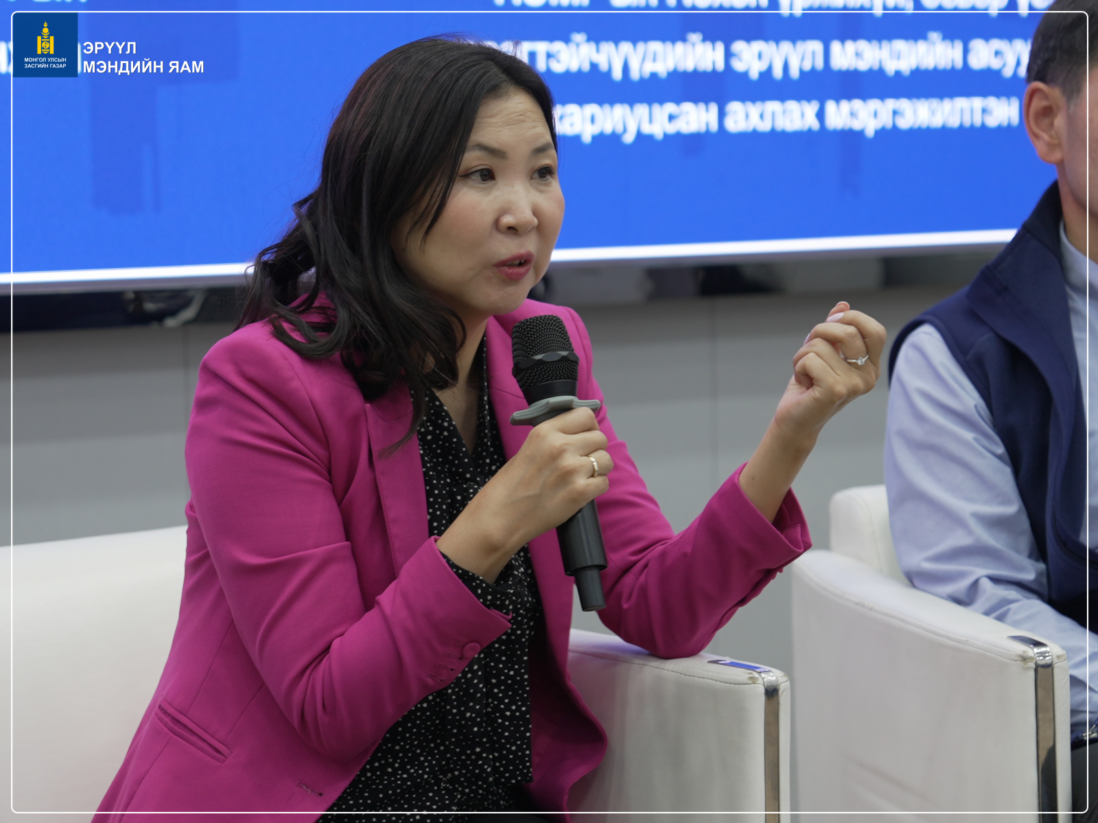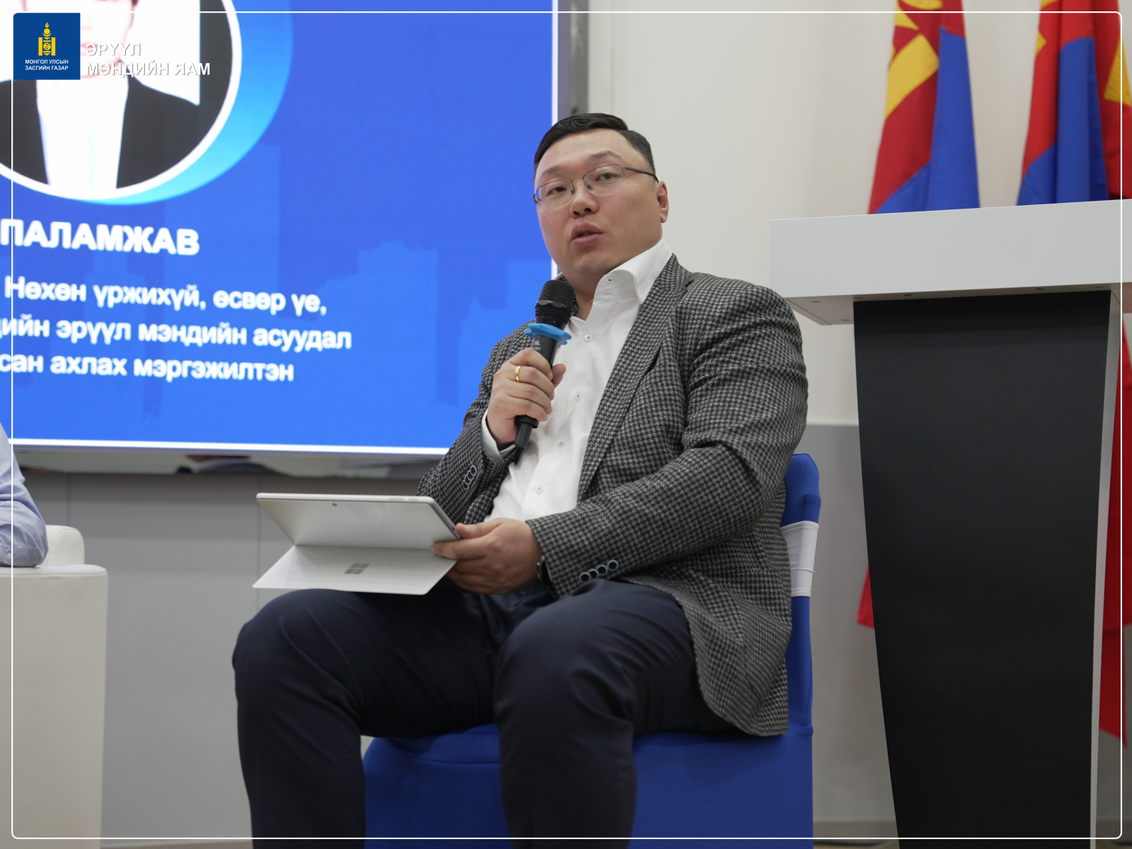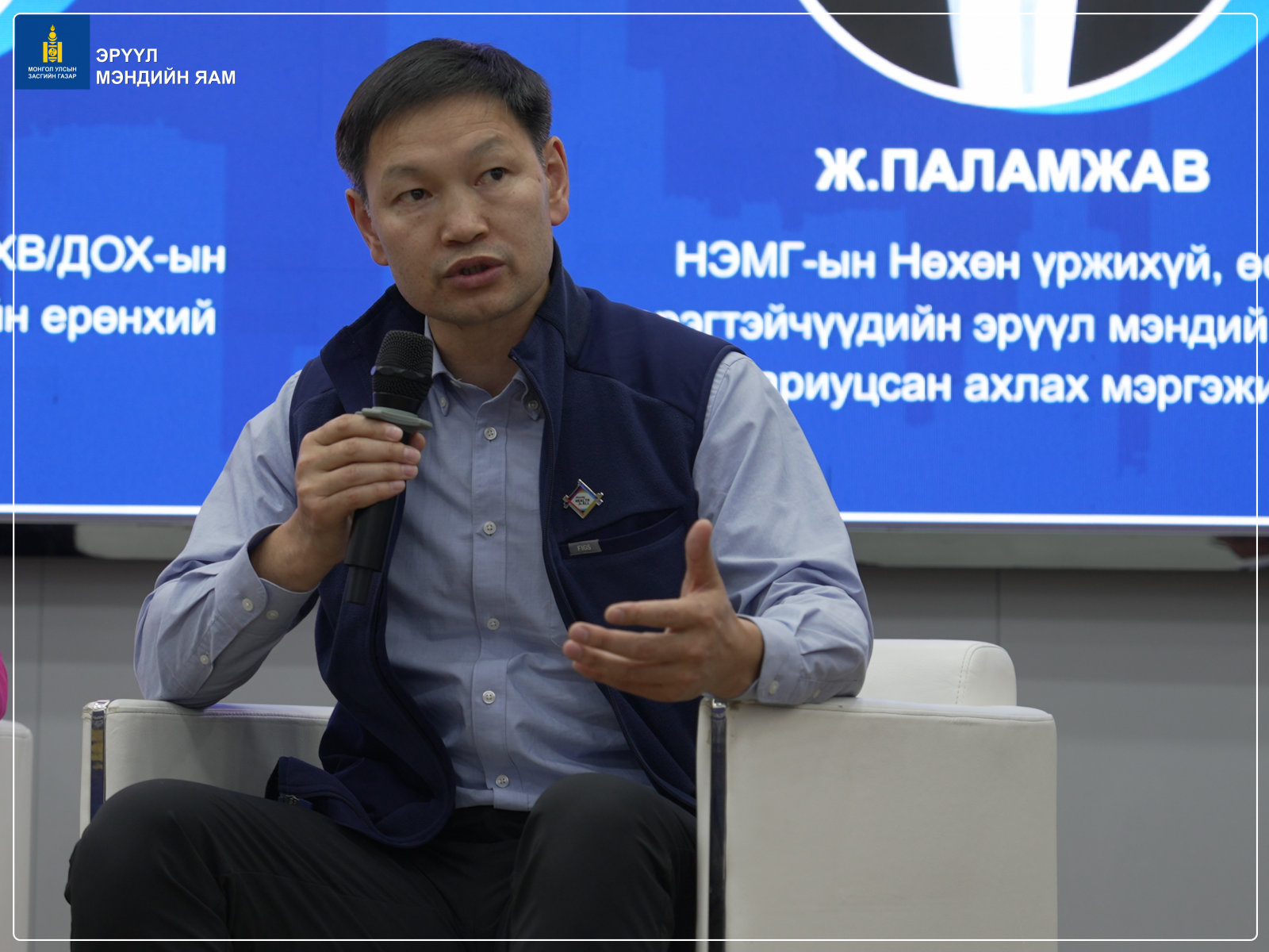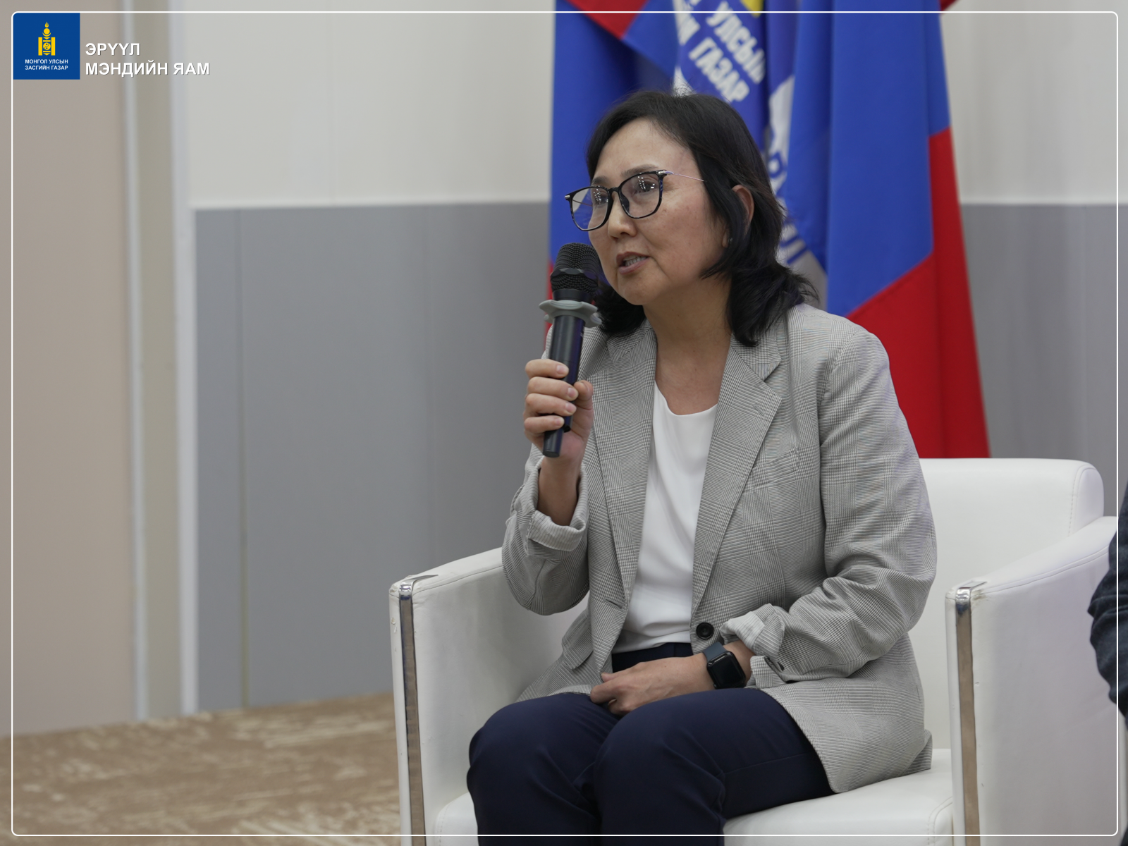Өвдсөн хойно нь бус өвдөхөөс нь өмнө урьдчилан сэргийлэх, эрт үед оношлуулж эмчлүүлэх, эрүүл мэндийн даатгалд хамрагдах нь ирээдүйд үүсч болох эрүүл мэндийн болон эдийн засгийн эрсдэлээс хамгаалах учиртай гэдгийг залууст ойлгуулж, мэдлэг мэдээллээр хангах хэрэгтэй. Нийгмийн эрүүл мэндийн тусламж, үйлчилгээний тухай анхдагч хуулийг 2024 онд батлуулсан. Мөн Монгол Улсын Засгийн газрын шийдвэрээр “Эрүүл шүд”, “Иргэний эрүүл мэндийн боловсролыг дээшлүүлэх” цогц арга хэмжээ төлөвлөгөөг 4 яамны оролцоотой хамтран баталж хэрэгжүүлж байна. Энэхүү төлөвлөгөөг хэрэгжүүлэхэд та бүхний оролцоо, манлайлал чухал гэдгийг онцолж хэллээ.