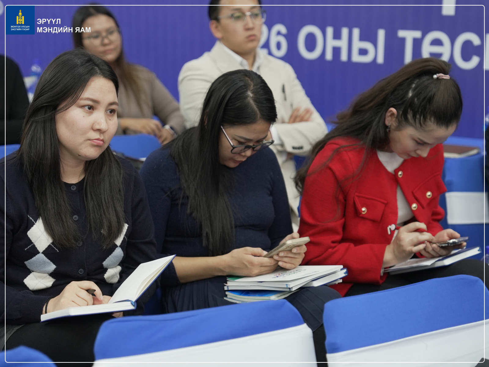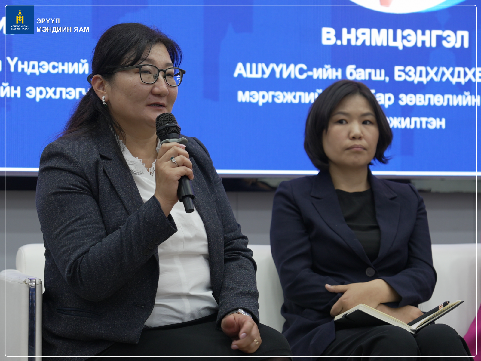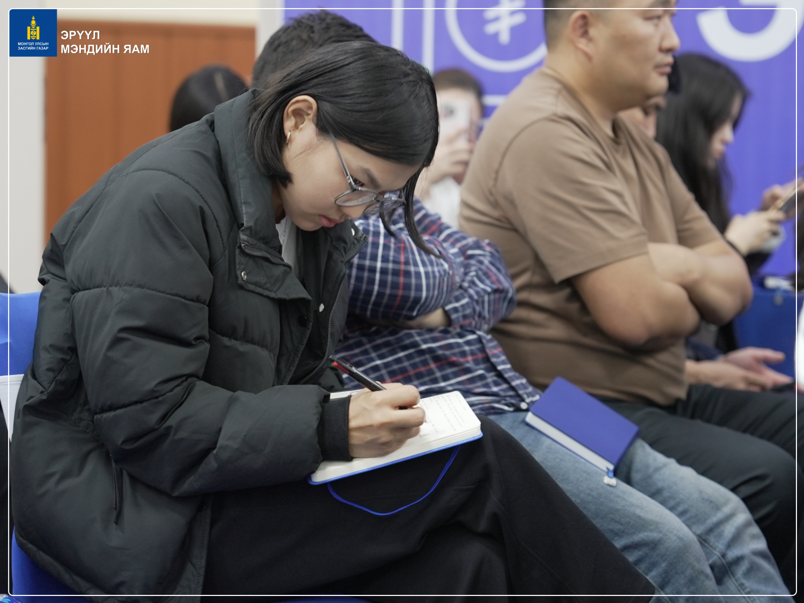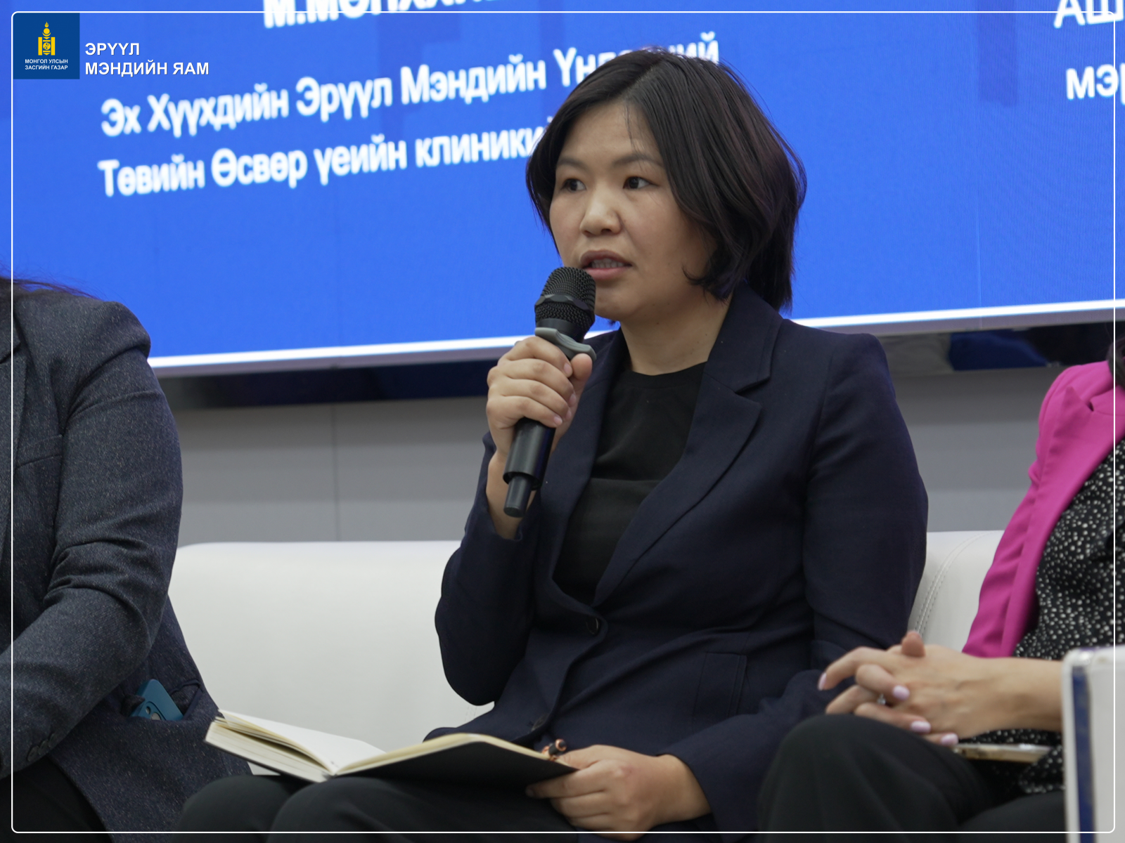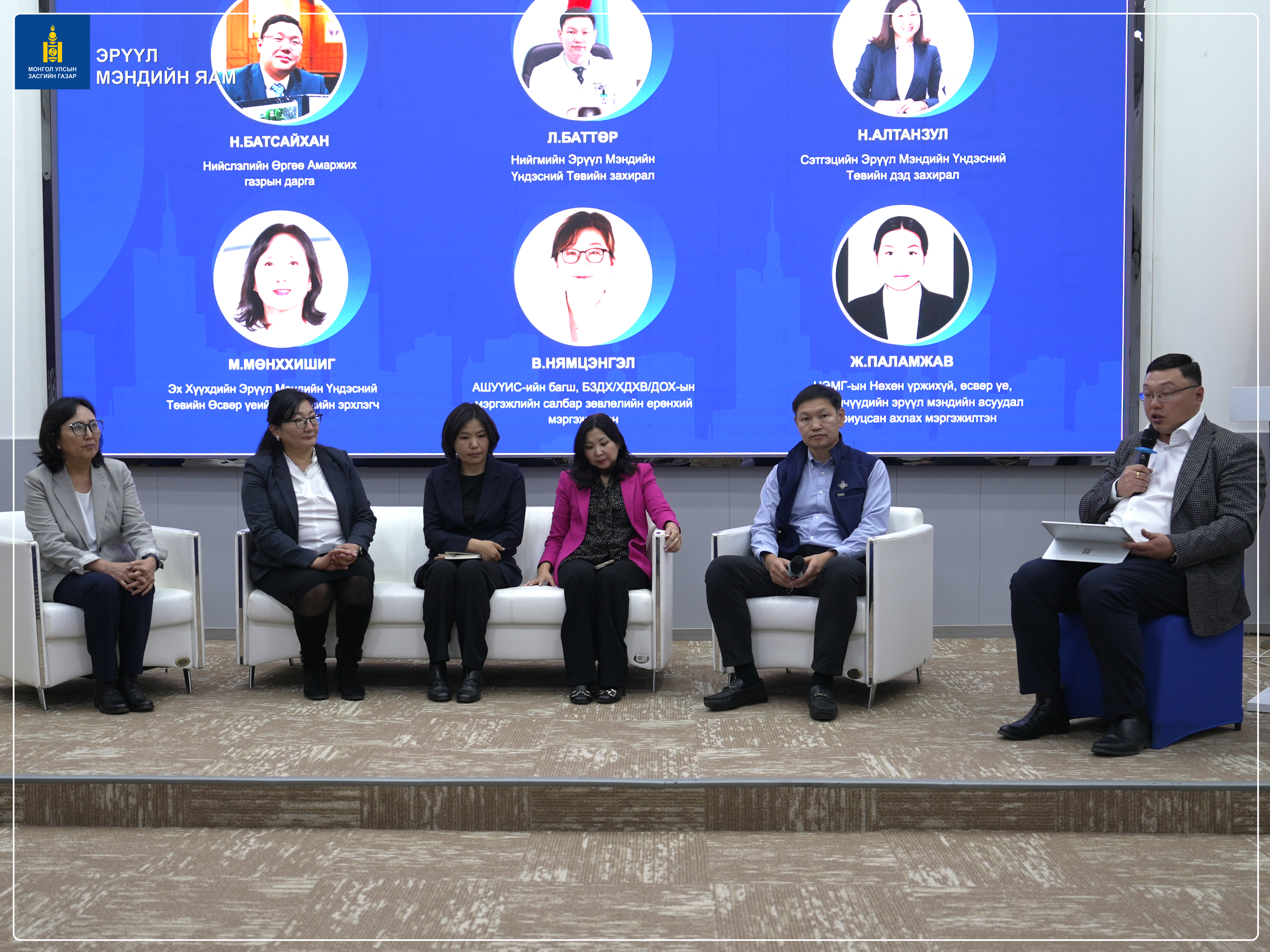 Өвдсөн хойно нь бус өвдөхөөс нь өмнө урьдчилан сэргийлэх, эрт үед оношлуулж эмчлүүлэх, эрүүл мэндийн даатгалд хамрагдах нь ирээдүйд үүсч болох эрүүл мэндийн болон эдийн засгийн эрсдэлээс хамгаалах учиртай гэдгийг залууст ойлгуулж, мэдлэг мэдээллээр хангах хэрэгтэй. Нийгмийн эрүүл мэндийн тусламж, үйлчилгээний тухай анхдагч хуулийг 2024 онд батлуулсан. Мөн Монгол Улсын Засгийн газрын шийдвэрээр “Эрүүл шүд”, “Иргэний эрүүл мэндийн боловсролыг дээшлүүлэх” цогц арга хэмжээ төлөвлөгөөг 4 яамны оролцоотой хамтран баталж хэрэгжүүлж байна. Энэхүү төлөвлөгөөг хэрэгжүүлэхэд та бүхний оролцоо, манлайлал чухал гэдгийг онцолж хэллээ.