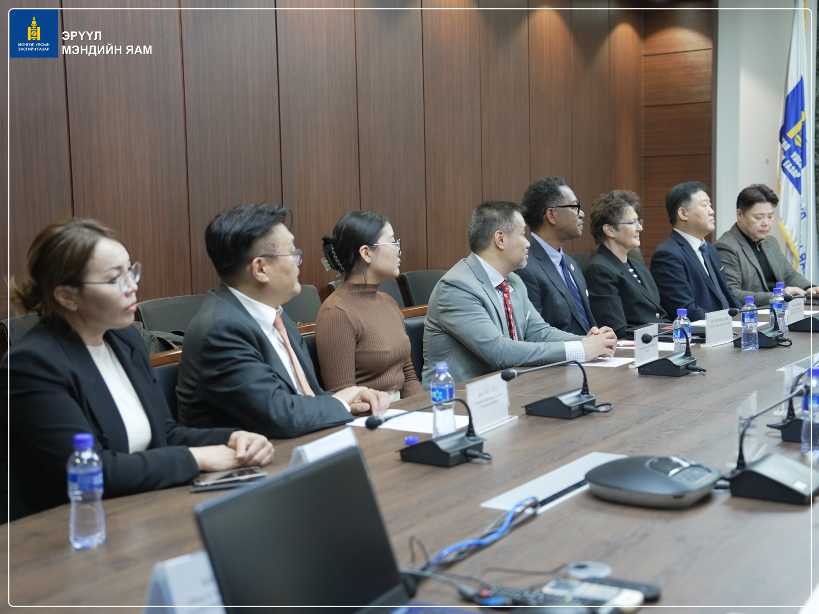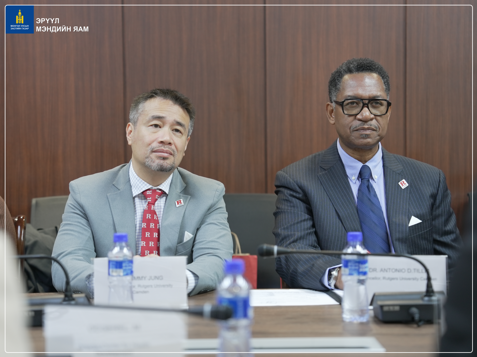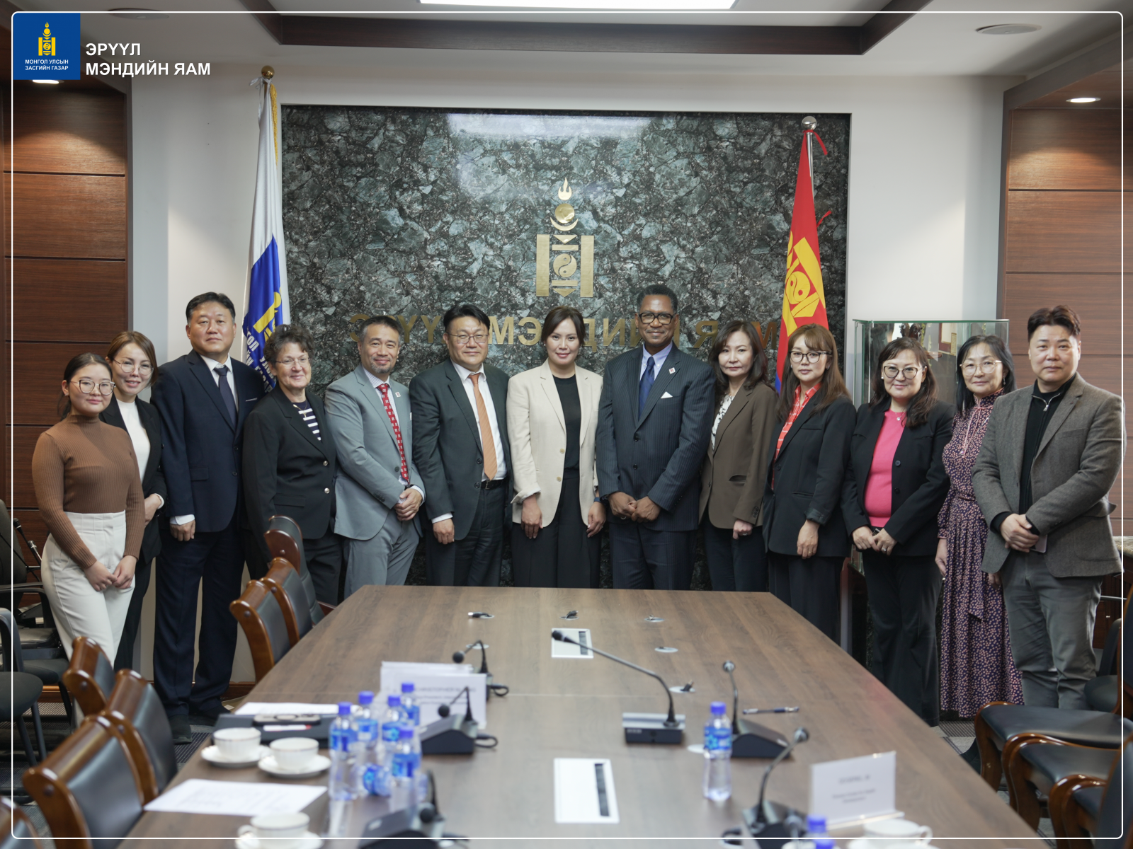 Эрүүл мэндийн сайдын зөвлөх Б.Дэмбэрэл, Салбарын хүний нөөцийн хөгжлийн хэлтсийн дарга Б.Туяа, Сувилахуйн тусламж, үйлчилгээний хэлтсийн дарга Б.Эрдэнэцэцэг, Эрүүл мэндийн хөгжлийн төвийн захирал М.Одгэрэл болон бусад холбогдох төлөөлөл нар АНУ-ын Rutgers их сургуулийн болон БНСУ-ын Олон улсын боловсрол солилцооны холбооны удирдах албаны бүрэлдэхүүнтэй уулзалт хийлээ. (2025.10.15)