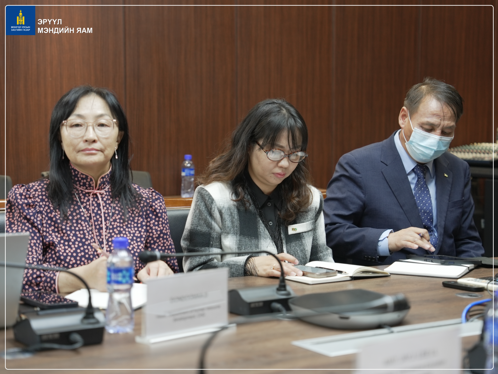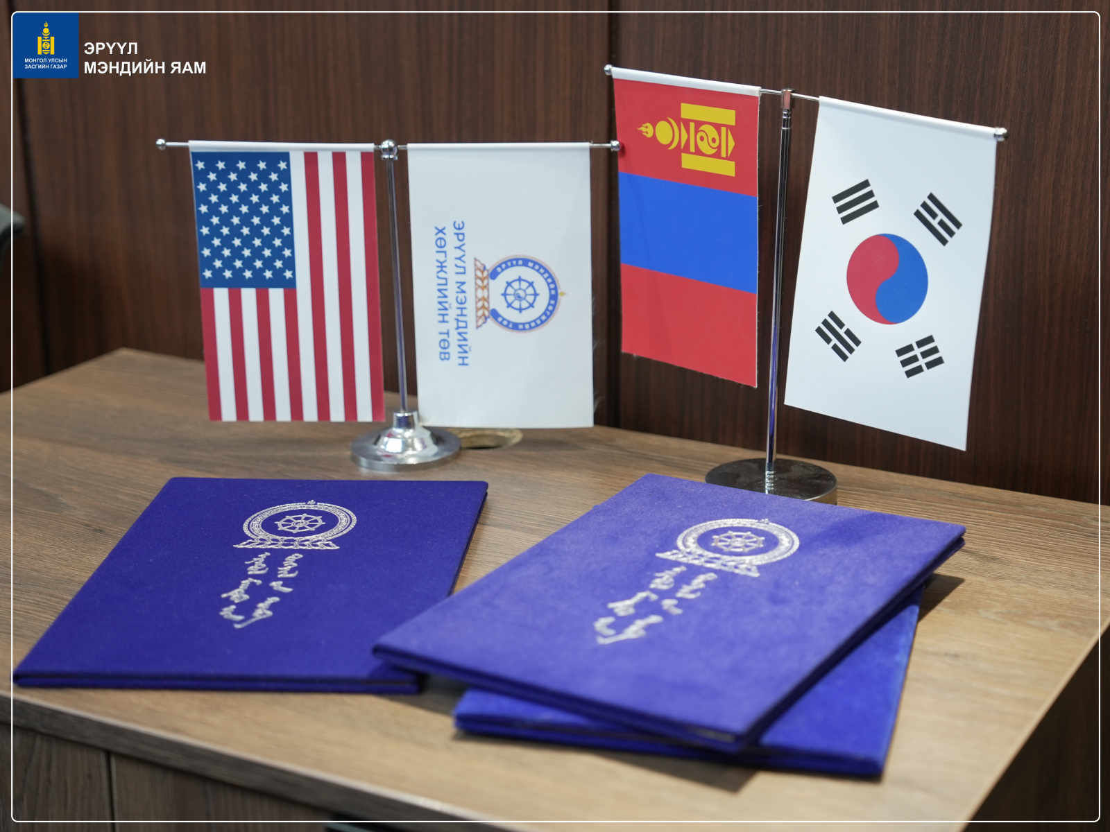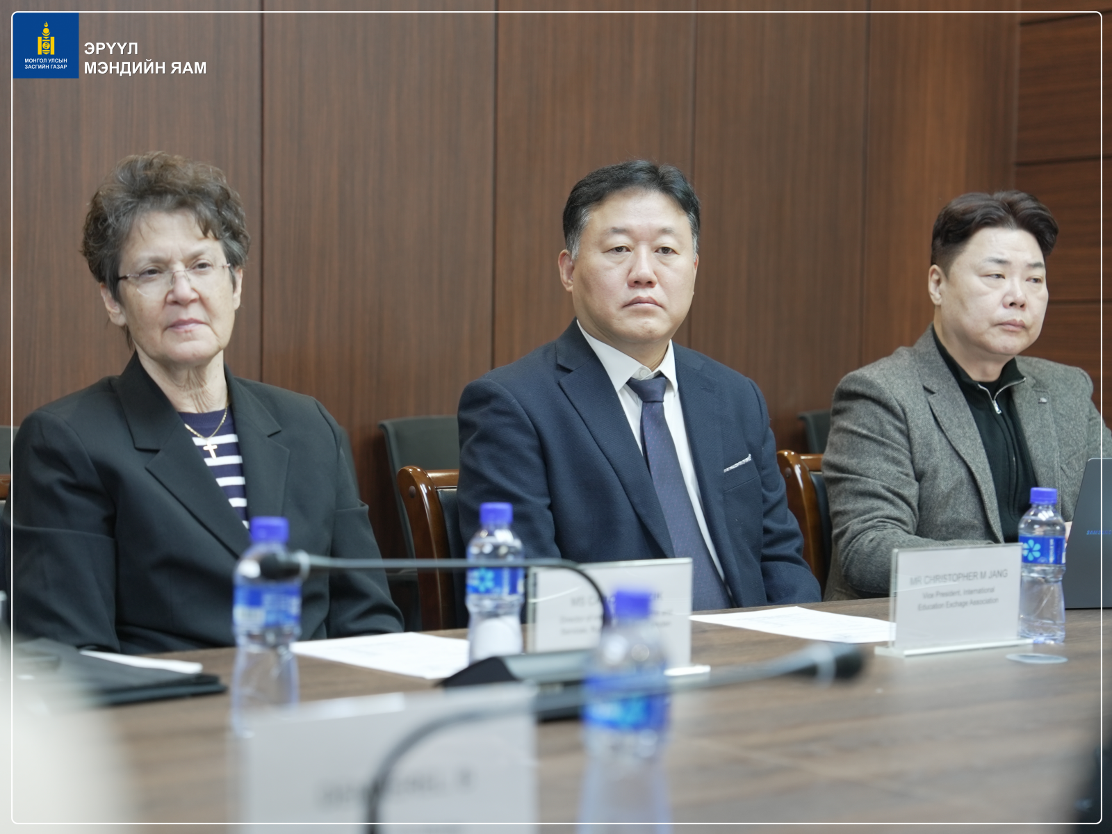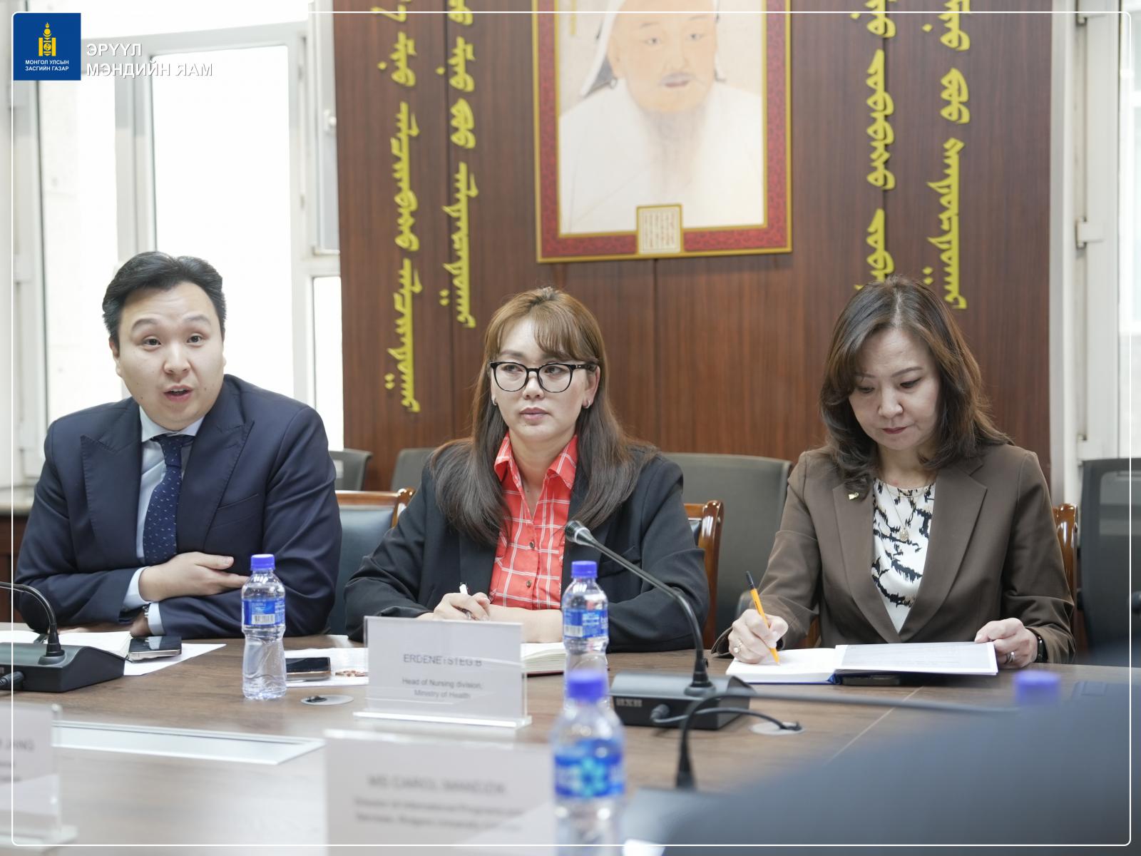 Эрүүл мэндийн сайдын зөвлөх Б.Дэмбэрэл, Салбарын хүний нөөцийн хөгжлийн хэлтсийн дарга Б.Туяа, Сувилахуйн тусламж, үйлчилгээний хэлтсийн дарга Б.Эрдэнэцэцэг, Эрүүл мэндийн хөгжлийн төвийн захирал М.Одгэрэл болон бусад холбогдох төлөөлөл нар АНУ-ын Rutgers их сургуулийн болон БНСУ-ын Олон улсын боловсрол солилцооны холбооны удирдах албаны бүрэлдэхүүнтэй уулзалт хийлээ. (2025.10.15)