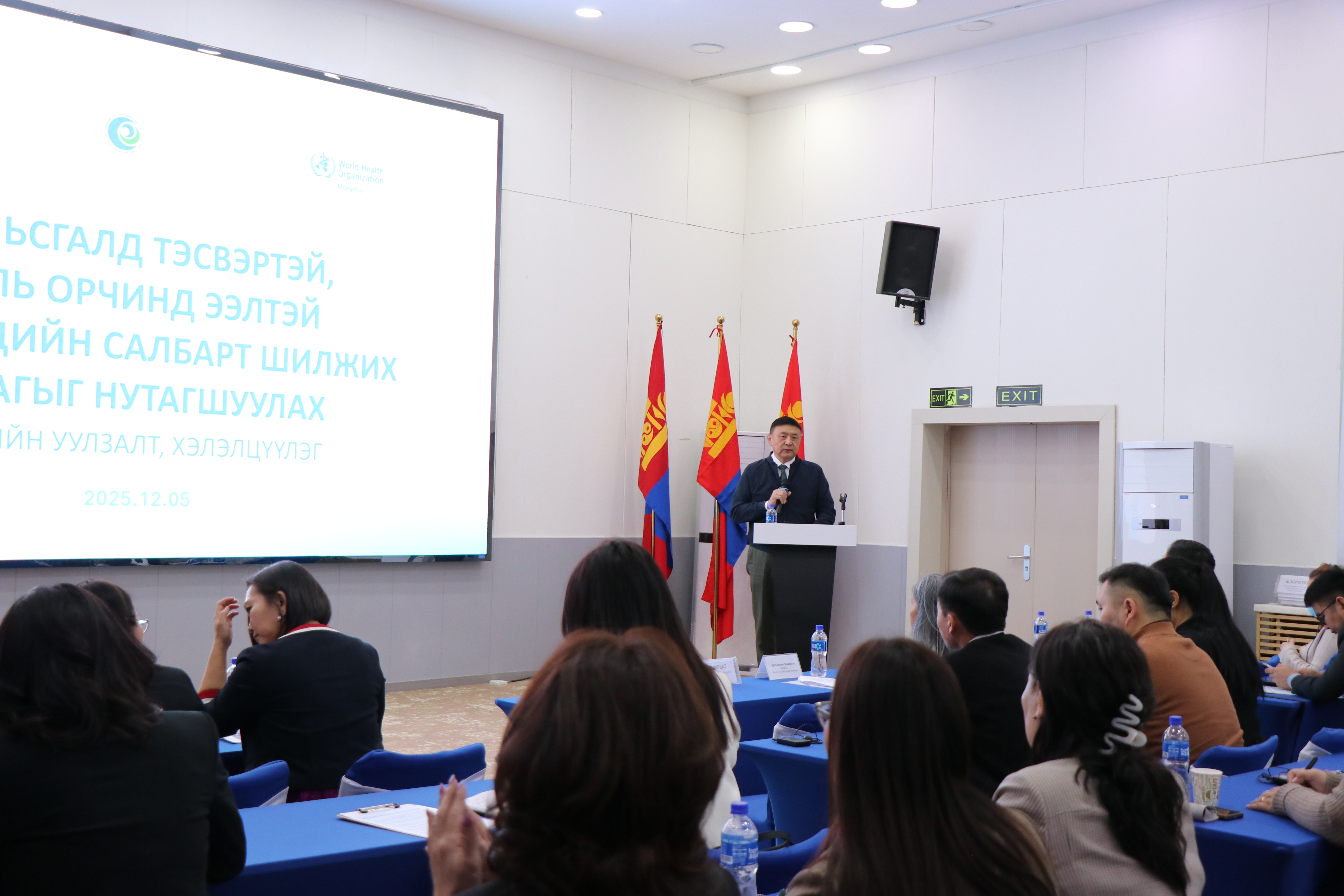 Хүний эрүүл мэнд, мал амьтны эрүүл мэнд, хүрээлэн буй орчин, экосистем хоорондоо харилцан хамааралтай учраас бүхэлд нь авч үзэх бодлого барьж байгаа ба 2025-2028 онд Орчны эрүүл мэнд арга хэмжээний төлөвлөгөөг батлан хэрэгжүүлэхээр ажиллаж байна. Уур амьсгалын өөрчлөлтөд тэсвэртэй эрүүл мэндийн байгууллагуудыг бий болгоход бүх шатны эрүүл мэндийн байгууллагын удирдлагуудын манлайлал, оролцоо чухал гэдгийг онцоллоо.