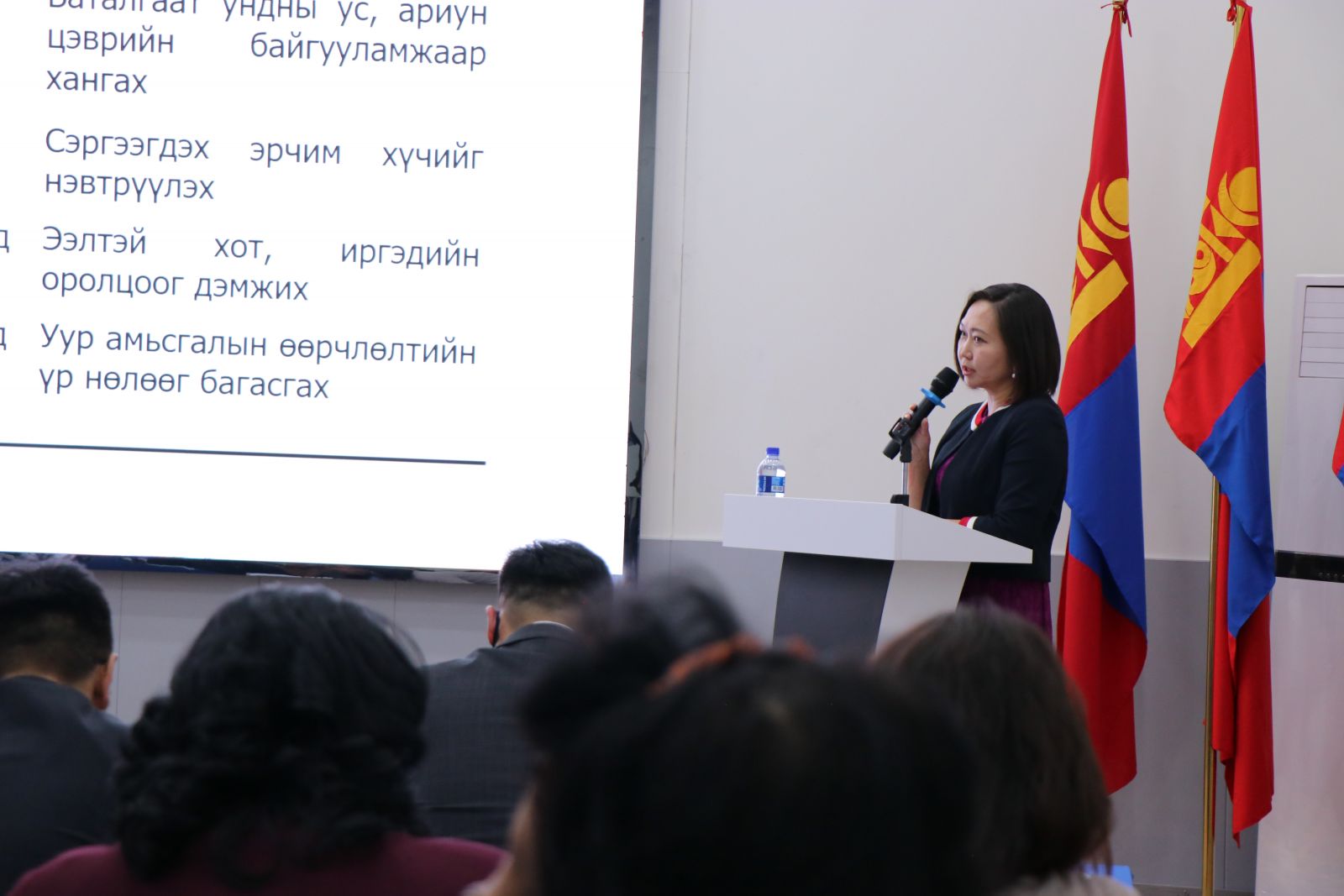 Үргэлжлүүлэн, ЭМЯ-ны Нийгмийн эрүүл мэндийн бодлогын хэрэгжилтийн газрын дарга, АУ-ны доктор Б.Цэцэгсайхан Монгол улсын уур амьсгалын өөрчлөлтийн чиглэлээр хэрэгжүүлж буй үйл ажиллагааны бодлого, чиглэл, эрүүл мэндийн салбарын чиг хандлагыг танилцууллаа.