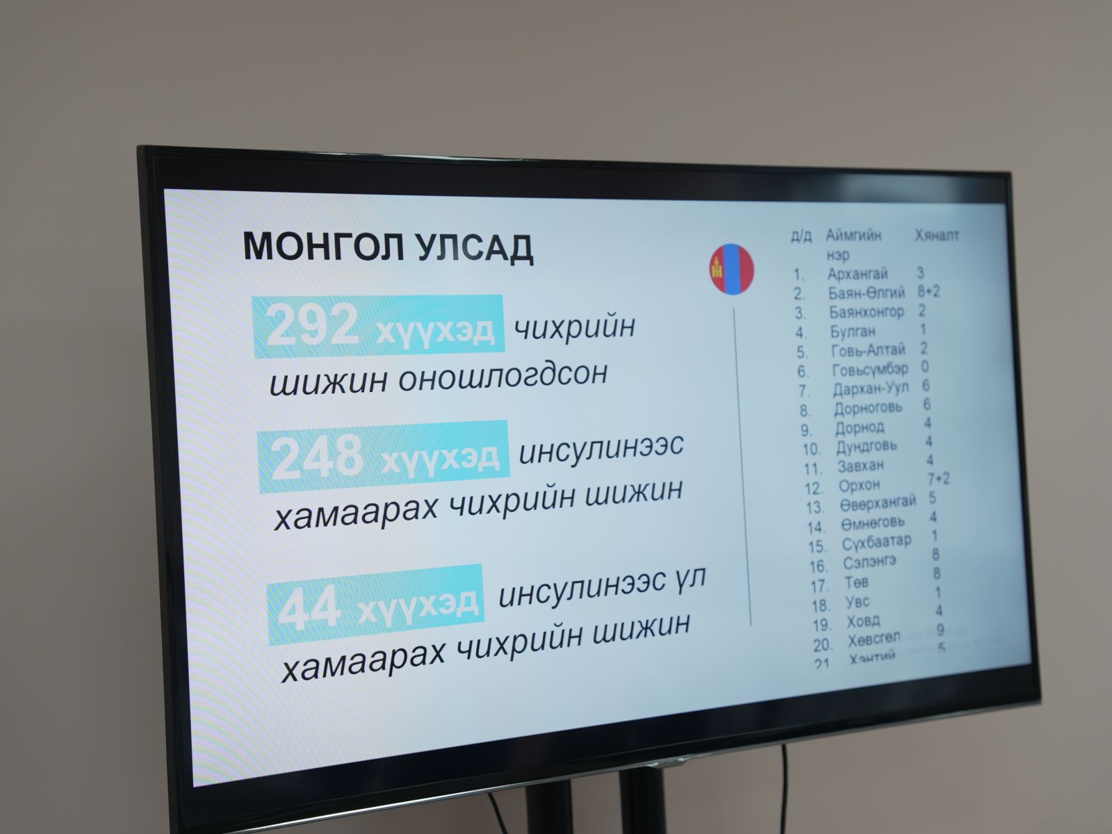 Өнөөдөр Сэлэнгэ, Хэнтий, Архангай, Сүхбаатар зэрэг зарим аймгаас ирсэн хүүхдүүд инсулин болон CGM төхөөрөмжөө хүлээн авч, ЭХЭМҮТ-ийн дотоод шүүрлийн эмч нараас заавар зөвлөгөө авлаа. Монгол Улсын хэмжээнд энэ оны байдлаар 292 хүүхэд чихрийн шижин 1-р хэв шинжээр оношлогдсон ба 248 нь инсулинээс хамаарах чихрийн шижин өвчтэй байна. 1-р хэв шинжийн чихрийн шижин нь 4-6, 10-14 насанд илүүтэй тохиолддог байна.