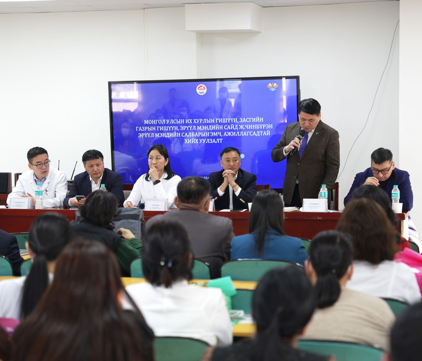 Эрүүл мэндийн сайд Ж.Чинбүрэн эрүүл мэндийн салбарт хэрэгжүүлж буй бодлого чиглэл, аймаг орон нутагт чиглэсэн томоохон хөрөнгө оруулалт бүхий төслүүдийн талаар танилцуулж, эмч ажилтнуудын сонирхсон асуултад хариулт өглөө.