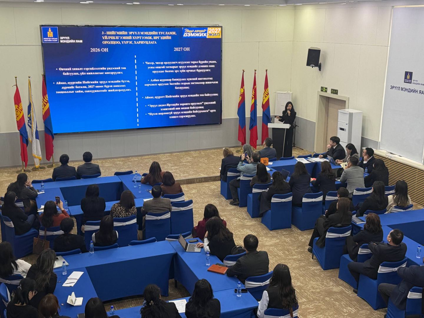 “Эрүүл мэндийг дэмжих жил - 2027” арга хэмжээний төлөвлөгөө түүний бэлтгэл ажлыг хангах, “Эрүүл мэндийн салбарыг 2026-2029 онд хөгжүүлэх стратегийн төсөл”-үүдийн хэлэлцүүлэгт ЭМЯ-ны харьяа эрүүл мэндийн байгууллагууд, нийслэл, дүүрэг, өрхийн эрүүл мэндийн төвийн удирдлага, төлөөлөл 100 орчим албан хаагч өргөн бүрэлдэхүүнтэй оролцлоо.