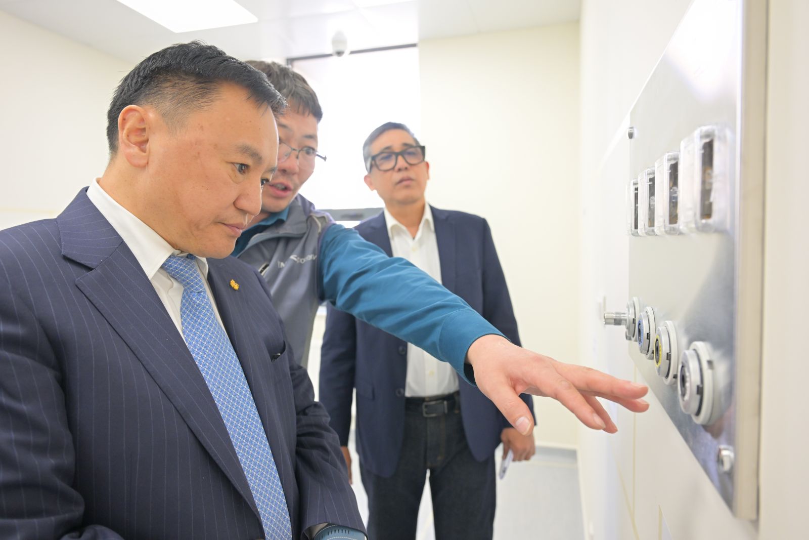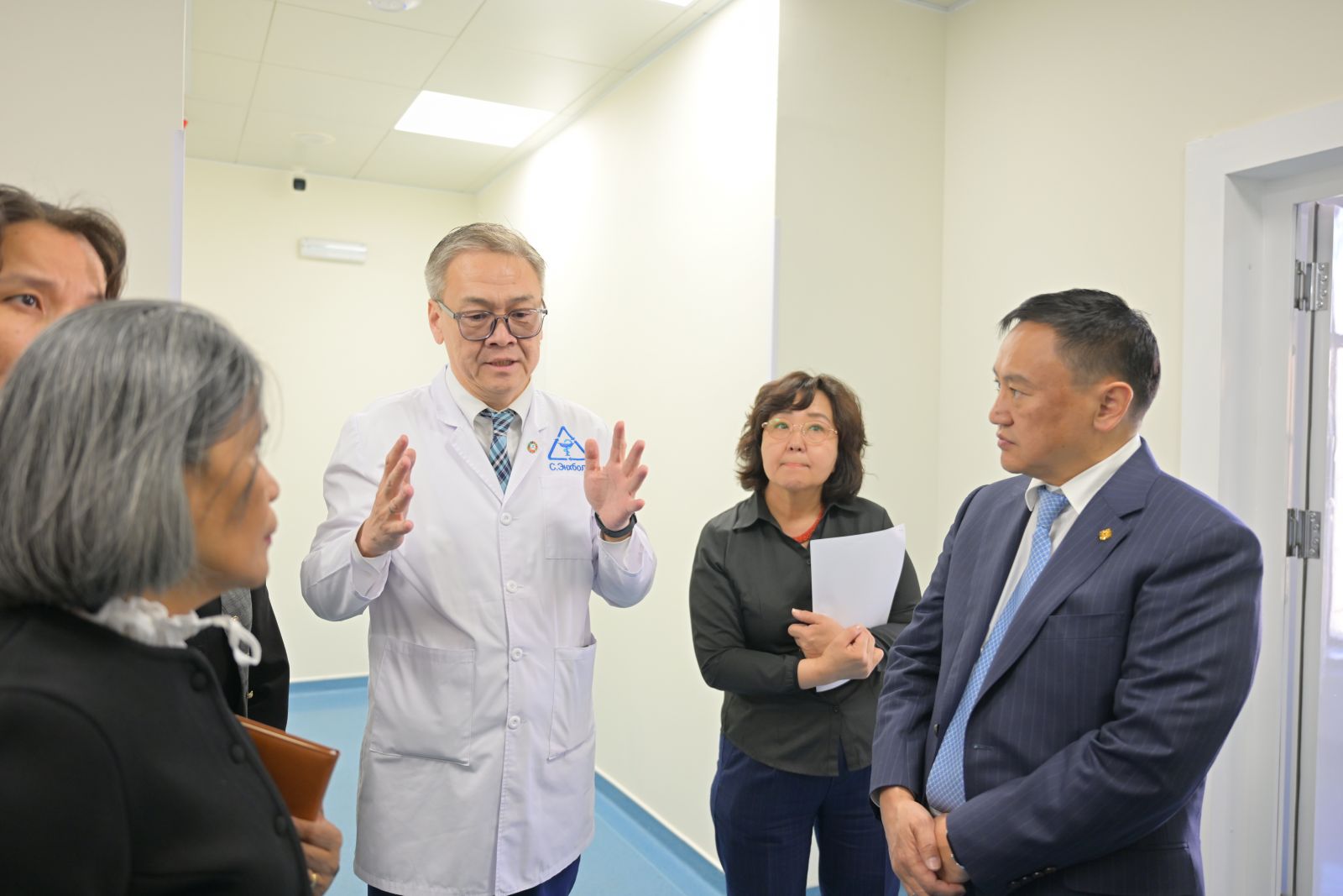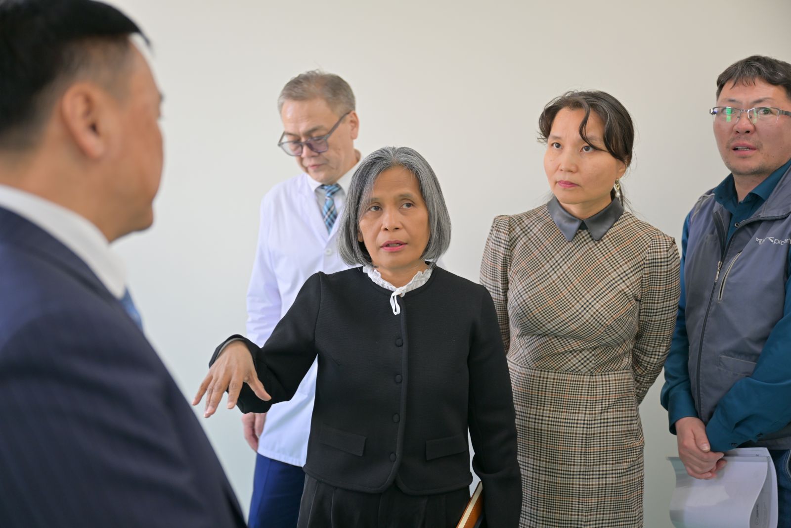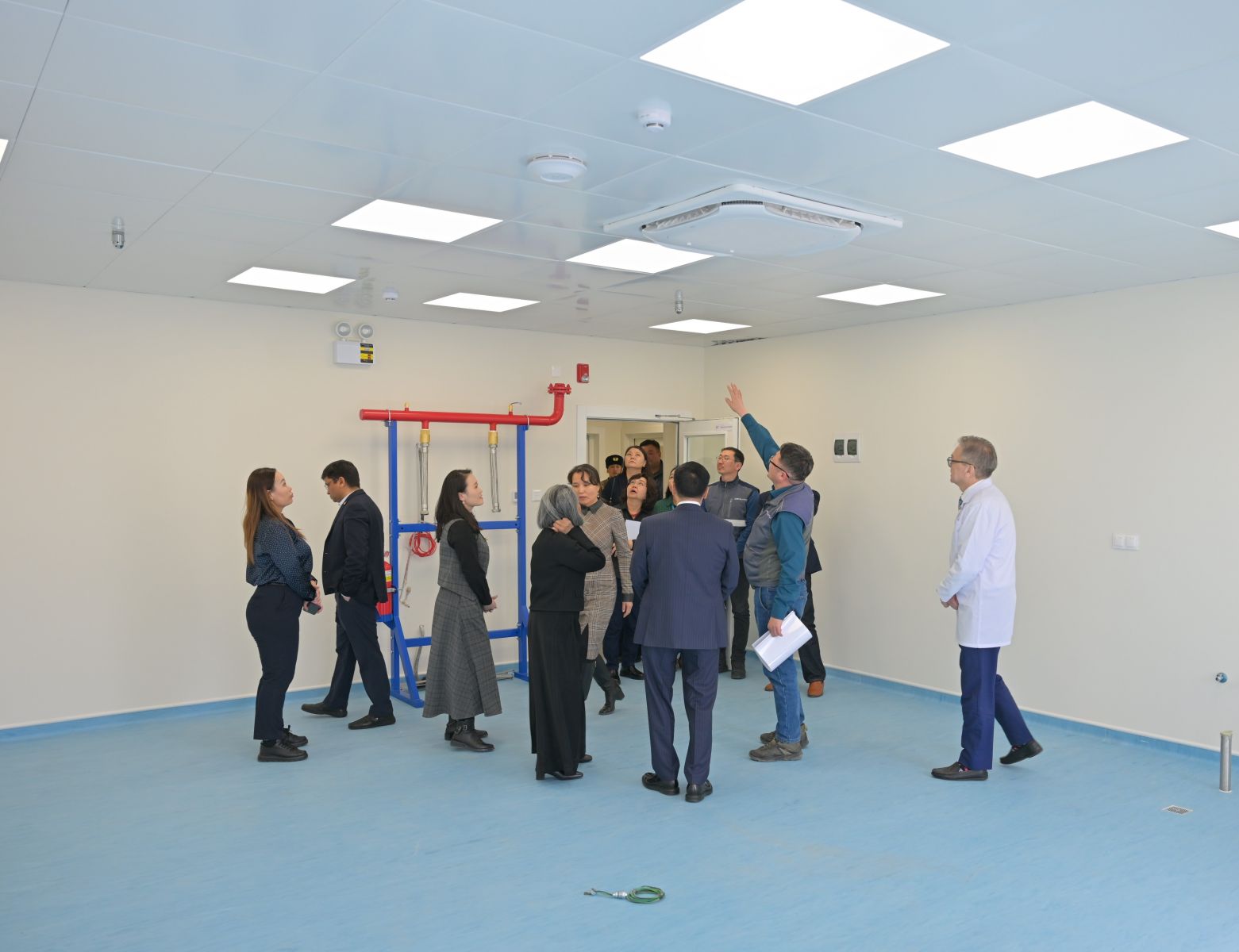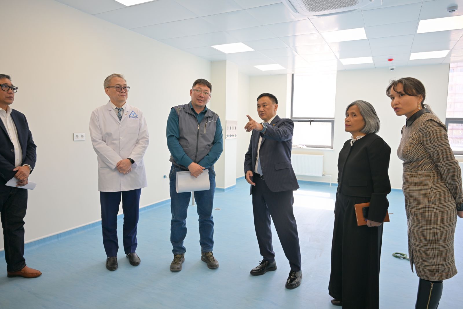 Эрүүл мэндийн сайд Ж.Чинбүрэн болон ДЭМБ-ын суурин төлөөлөгч Др Сокорро Эскаланте, Эм, эмнэлгийн хэрэгслийн хяналт, зохицуулалтын газрын албан үүргийг түр орлон гүйцэтгэгч П.Алтанцэцэг, ХӨСҮТ-ийн захирал С.Энхболд нар өнөөдөр Монголын Эмийн чанарын хяналтын Үндэсний лавлагаа лабораторийн барилгын ажлын явцтай танилцлаа.